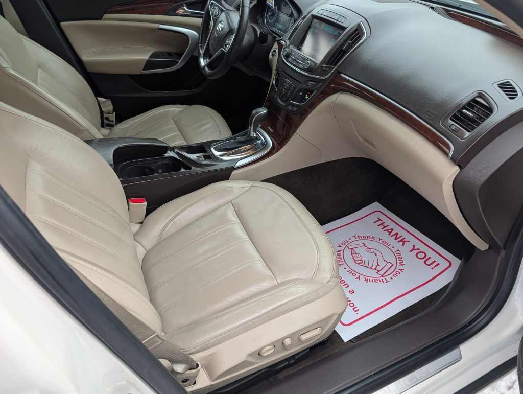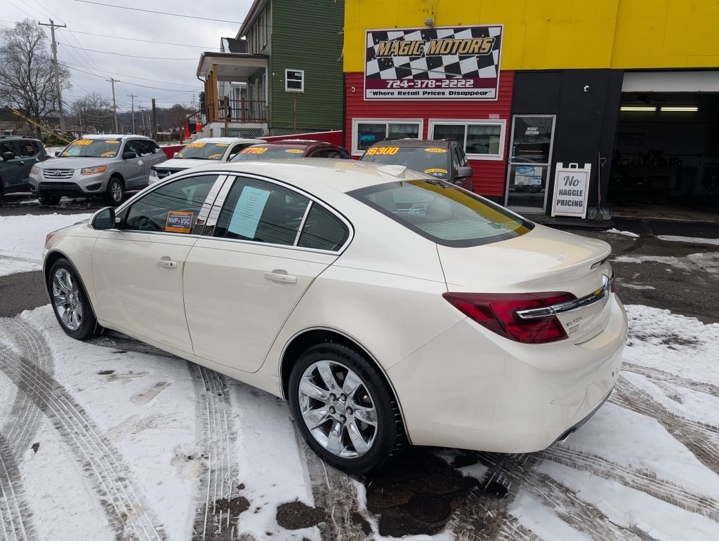 Enjoy the ride in this 2015 Buick Regal Premium. She's a beauty, with a pearl white exterior that gleams in the sunlight and a classy tan leather interior, offering plenty of comfort to seat five people. Under the hood, you'll find a peppy 2.0L 4-cylinder engine paired with an automatic transmission, delivering smooth and responsive front-wheel drive. Even better, her past life in sunny Florida means no rust and a super clean body. With over 97,885 miles, this car is tried and true. Plus, she's passed the PA State Inspection/Emissions, good through December 2026. To top it off, this jewel runs on gas, ensuring a practical ride. Swing by Magic Motors for a test drive. With comprehensive warranty options ranging from 3 months up to a whopping 48 months and great financing options, owning this Buick Regal Premium isn't just a dream – it can be your reality.
