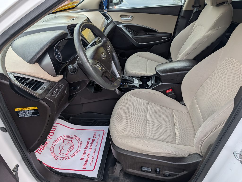 You'll quickly appreciate this 2017 Hyundai Santa Fe Sport. From the glossy White exterior to the spotless Cloth Tan interior, it's just as stunning on the inside as it is on the outside. It doesn't skip a beat under the hood either with its solid 2.4L 4 Cylinder engine and smooth automatic transmission, synced perfectly with an all-wheel drive system, ideal for handling any road conditions thrown at you. Boasting a seating capacity of 5 and running on gasoline, it's the perfect companion for family outings. Owned by a single person, this beauty has a just over 147,000 miles, which gives you the confidence of operating a well-maintained machine. It is fitted with Weather Tech floormats and a handy backup camera to assist with those difficult parking spots! The state inspection/emission is valid until January 2027. To keep you covered, Magic Motors provides 3 to 48-month comprehensive warranty options at a cost. And remember, Magic Motors will work with you on the financing options. You've absolutely got to check out this Hyundai Santa Fe Sport.