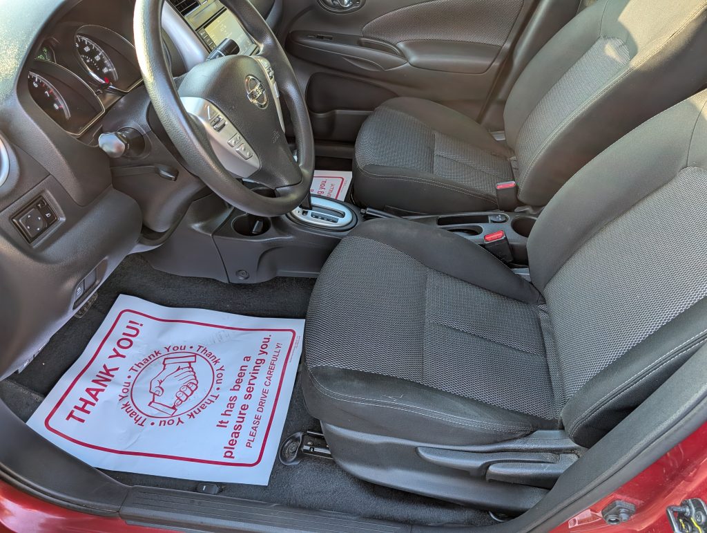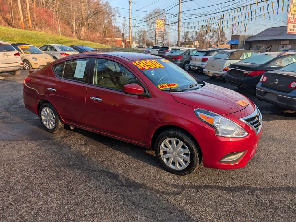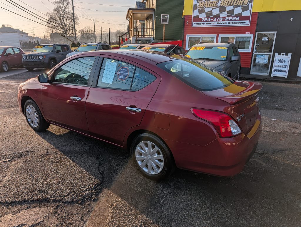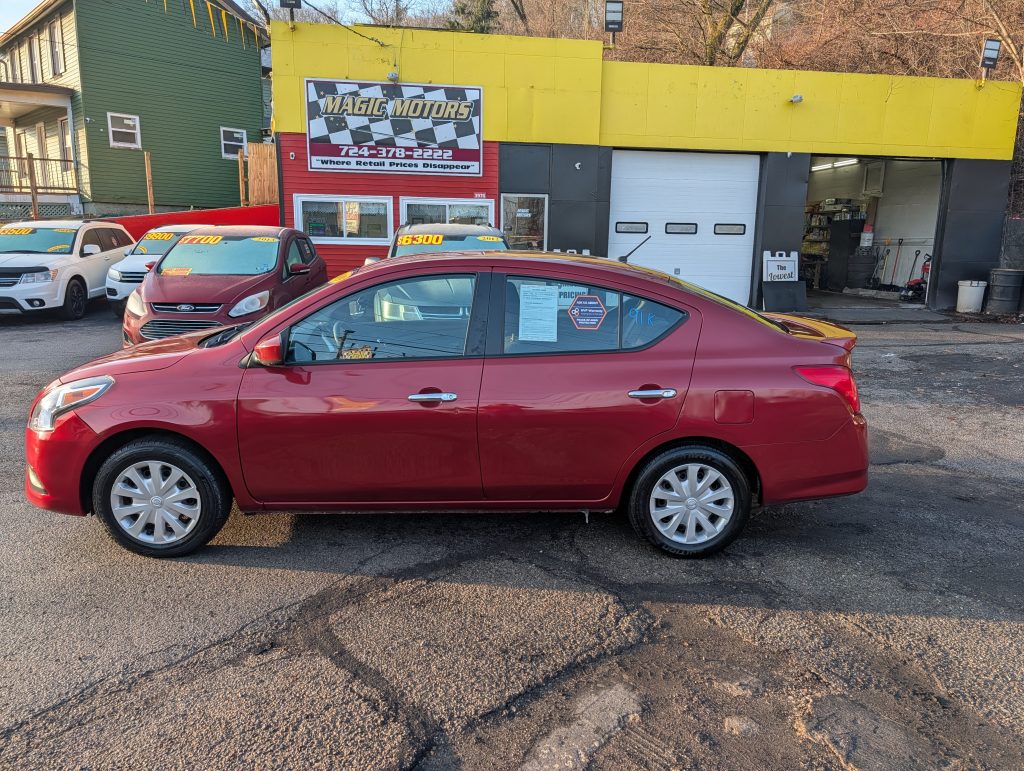 This 2019 Nissan Versa SV, painted in a vibrant Red, packs a punch with its sturdy 1.6L, 4 Cylinder engine. With 91,020 miles on the odometer, this car's automatic transmission and front-wheel drive ensure a smooth ride. Its 5-person seating bedecked in black cloth ensures comfortable journeys for the whole crew. The Versa shines on fuel efficiency, loving your wallet and the environment. Don't fear parallel parking with an indispensable backup camera, and stay connected on the go with Bluetooth functionality. This dependable vehicle has passed the PA State Inspection/Emissions until December 2026. Feel secure knowing Magic Motors offers a range of comprehensive warranty options from 3 to 48 months at an additional cost. Plus, financing options are also available through Magic Motors, making it even easier to drive off in this versatile Versa.